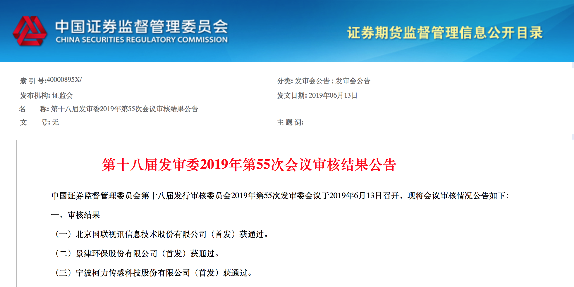 中國(guó)證券監督管理(lǐ)委員(yuán)會(huì)第十八屆發行(xíng)審核委員(yuán)會(huì)♦2019年(nián)第55次發審委會(huì)議(yì)于2019年(nián)6月(yuè)13日(rì)召開(kāi),景津環保(首發)獲通(tōng)過。本次拟發行(xíng)股份數(shù)不(bù)超過4050萬股,拟募集資金(jīn)3.02億元。