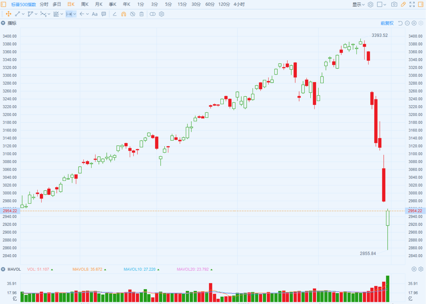 新冠疫情的(de)全球化(huà)蔓延,美(měi)股上(shàng)周雪(xuě)崩損失近(jìn)5萬億美(měi)元,标普500指數(shù)7日(rì)下(xià)跌12.94%。同時(shí)上(shàng)周五跌勢收窄,情緒有(yǒu)所恢複。